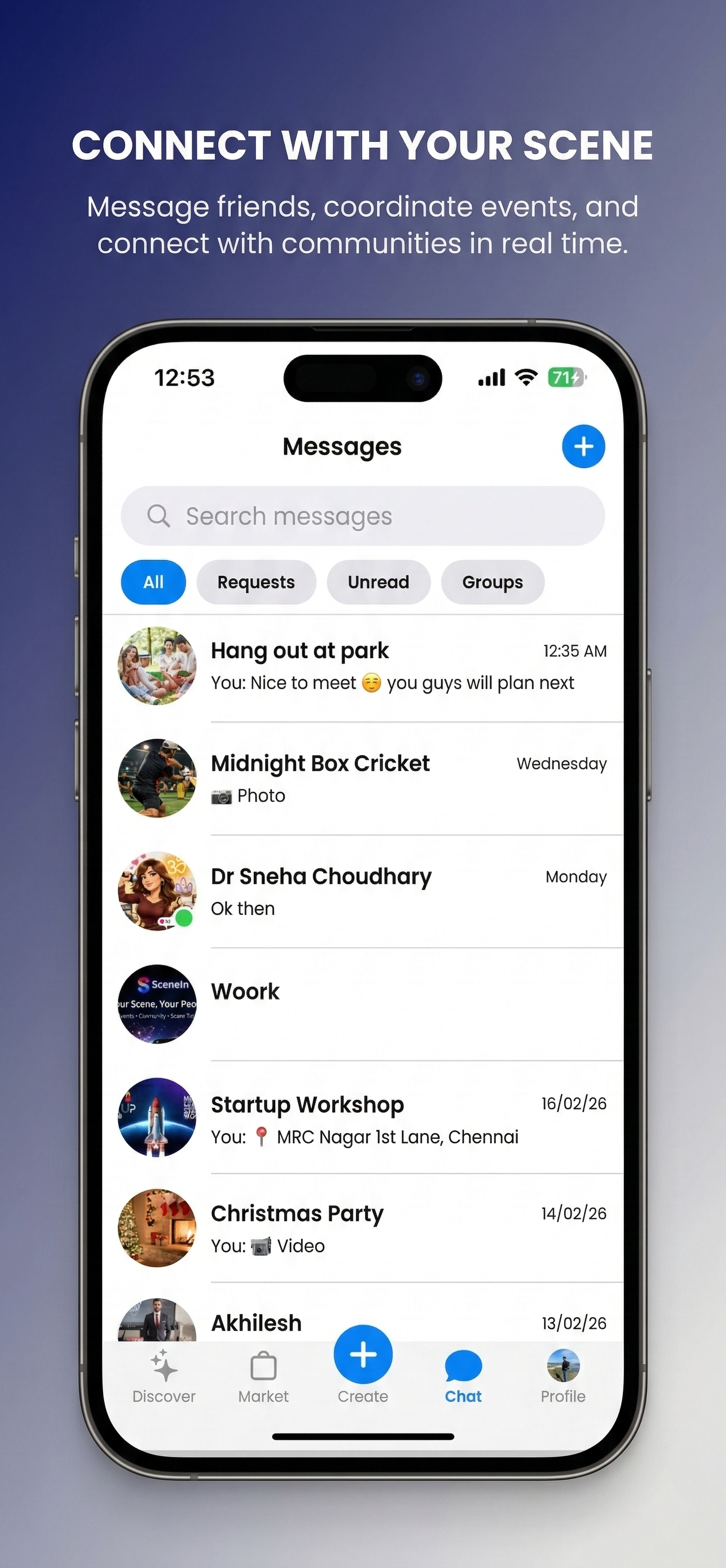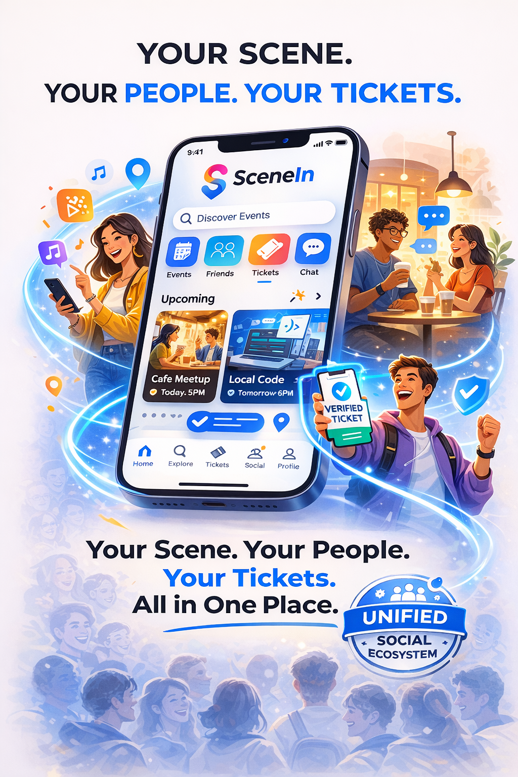 Stop collecting random followers. SceneIn is built to help you find your actual people, coordinate your nights, and build a real-world community.